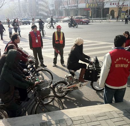 志愿者在馬路上執(zhí)勤