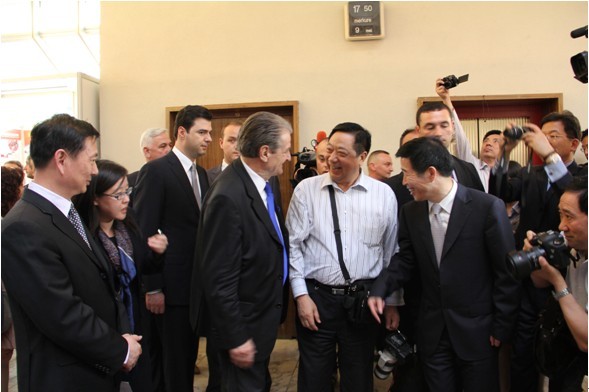 本次博覽會(huì)阿各大主流媒體爭(zhēng)相報(bào)道,參觀群眾絡(luò)繹不絕,在當(dāng)?shù)匾饦O大轟動(dòng)。貝里沙總理和巴沙市長(zhǎng)親切接見(jiàn)了公司于董事長(zhǎng)。(圖為阿爾巴尼亞總理貝里沙與于董事長(zhǎng)親切交談)