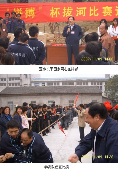 2007年11月9日,風(fēng)和日麗。集團(tuán)機(jī)關(guān)大院內(nèi)彩旗招展,鼓樂喧鳴。公司在新落成的藍(lán)球場舉行了“拼搏杯”冬季拔河比賽。機(jī)關(guān)、股份、路橋、張家港、地元、呈元、構(gòu)件廠、機(jī)電、房產(chǎn)等十幾家在寧單位都統(tǒng)一著裝,派出整體隊容參加比賽。