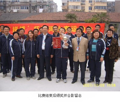 下午2:00正點時,隨著董事長于國家同志的一聲長長的哨響,比賽正式打響。參賽人員個個精神抖擻,吶喊助威聲更是振聾發(fā)聵,經(jīng)過幾輪激烈的角逐,最終一、二、三等獎分別由張家港分公司、股份公司、構(gòu)件廠獲得。最后公司領(lǐng)導(dǎo)給獲獎隊伍頒獎并與他們合影留念。