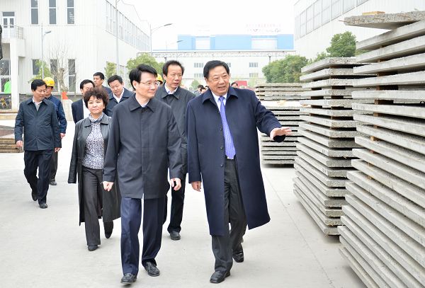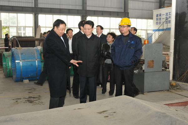 何權(quán)副省長一行參觀了我公司新型建筑工業(yè)化產(chǎn)品生產(chǎn)基地—— “大地工業(yè)園”,并聽取了我集團公司董事長兼總裁于國家,副總裁兼總工程師劉亞非,關(guān)于公司多元化發(fā)展以來所取得的各項成果介紹。劉亞非總工著重介紹了我公司以生產(chǎn)綠色、節(jié)能、環(huán)保、低碳的新型建材為導向的建筑工業(yè)化發(fā)展情況。
