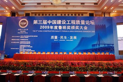 第三屆中國建設(shè)工程質(zhì)量論壇暨2009年度魯班獎(jiǎng)?lì)C獎(jiǎng)大會(huì)于11月25日、26日在深圳召開。原建設(shè)部副部長、中國建筑業(yè)協(xié)會(huì)會(huì)長鄭一軍、住房和城鄉(xiāng)建設(shè)部副部長郭允沖出席會(huì)議并作重要講話。廣東省委常委、深圳市人民政府代市長王榮致辭,深圳市委常委、副市長呂銳鋒主持會(huì)議。我大地建設(shè)集團(tuán)劉亞非副總裁、股份公司江中明總經(jīng)理與來自各地的獲獎(jiǎng)企業(yè)代表、各地建筑企業(yè)協(xié)會(huì)領(lǐng)導(dǎo)、各相關(guān)單位代表共1000多人出席會(huì)議。