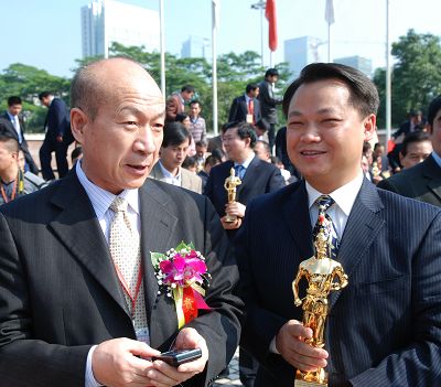 集團(tuán)劉亞非副總裁與股份公司江中明總經(jīng)理代表公司領(lǐng)獎(jiǎng)