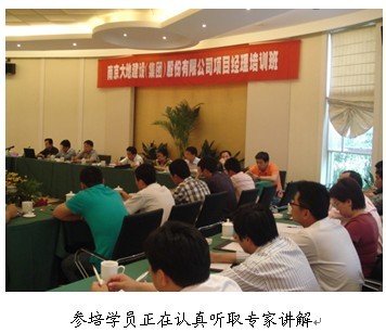 南京大地建設(shè)(集團)股份有限公司于近日在淮安舉辦了項目經(jīng)理專題培訓班,目的在于提升公司項目管理水平,把項目部打造成一流的創(chuàng)效平臺。集團公司領(lǐng)導黨委書記陳慶生以及副總裁、總工劉亞非親臨培訓班,并考察了工程的綜合管理情況,聽取了項目管理匯報及部分項目經(jīng)理的管理經(jīng)驗交流,并分別作了重要講話。股份公司項目經(jīng)理以及部分項目骨干代表等近60人參加了培訓班。