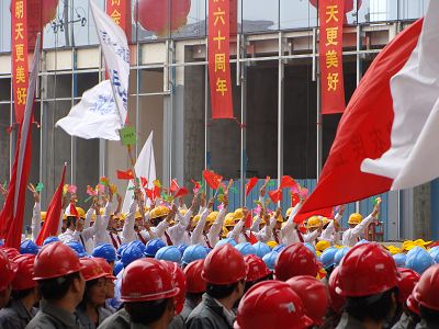 九月二十九日上午,市建設(shè)系統(tǒng)“祝福祖國美好明天,筑起南京錦繡未來”慶祝國慶60周年農(nóng)民工賽詩賽歌會,在河西十四所民用研發(fā)中心工地舉行。包括我公司在內(nèi)的來自18所農(nóng)民工業(yè)余學(xué)?傂5800名教師和學(xué)員歡聚一堂,代表全市建筑、市政、市容610所農(nóng)民工業(yè)余學(xué)校近40萬學(xué)員,為新中國成立60周年放聲高歌。