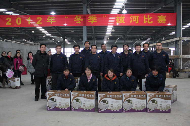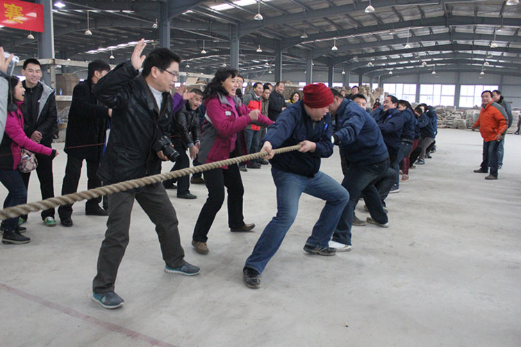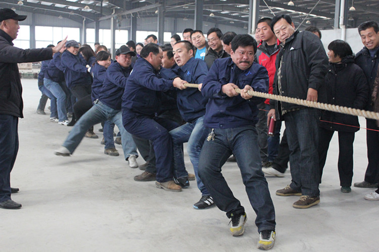 “嘟”,隨著一聲清脆的哨聲,新型建材公司寬敞明亮的文化石車間里立時(shí)沸騰起來,“加油”“加油”助威的吶喊聲此起彼伏,響成一片,氣氛熱烈。12月21日下午,公司拔河比賽在這里舉行,八只代表隊(duì)捉對較量。此次拔河比賽結(jié)合“迎公司60華誕”的主題,吸引了員工積極參與,激發(fā)了員工企業(yè)榮譽(yù)感,凝聚了團(tuán)結(jié)協(xié)作精神,已成為公司的傳統(tǒng)比賽項(xiàng)目。經(jīng)過激烈角逐,新型建材公司奪得第一,機(jī)電公司、股份公司分別獲得第二和第三名。