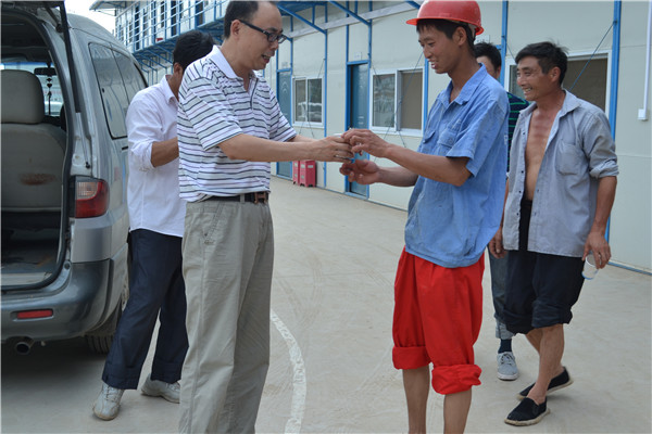 赤日炎炎,盛夏酷暑,是建筑工作的艱苦期,是工程施工的黃金期,也是預防事故的關鍵期。值此之際,機電安裝分公司綜合部、安全質量部帶隊對機電各項目工地施工一線的同志們送去親切的慰問,并送上人丹、清涼油以及防暑降溫綠豆湯,同時對重點項目部發(fā)放綠豆和白糖,要求項目部進一步做好建筑工地的防暑降溫工作,加強民工食堂用餐、宿舍衛(wèi)生管理,關愛民工的生產、生活,為民工營造良好的工作環(huán)境。同時要進一步強化建筑工地安全生產監(jiān)管,積極消除安全隱患,嚴防安全事故發(fā)生。