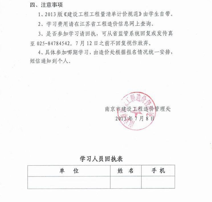 關(guān)于組織參加省造價(jià)管理總站舉辦的2013計(jì)價(jià)規(guī)范宣貫學(xué)習(xí)的通知