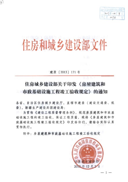 轉發(fā)建質[2013]171號《住房城鄉(xiāng)建設部關于印發(fā)<房屋建筑和市政基礎設施工程竣工驗收規(guī)定>的通知》