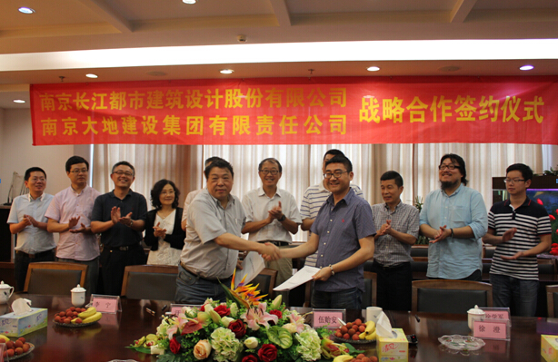 7月9日,南京大地建設(shè)集團和南京長江都市建筑設(shè)計有限公司戰(zhàn)略合作框架協(xié)議簽字儀式在集團28樓會議室舉行,伍貽安總裁和汪杰董事長分別代表兩家單位在協(xié)議書上簽字。