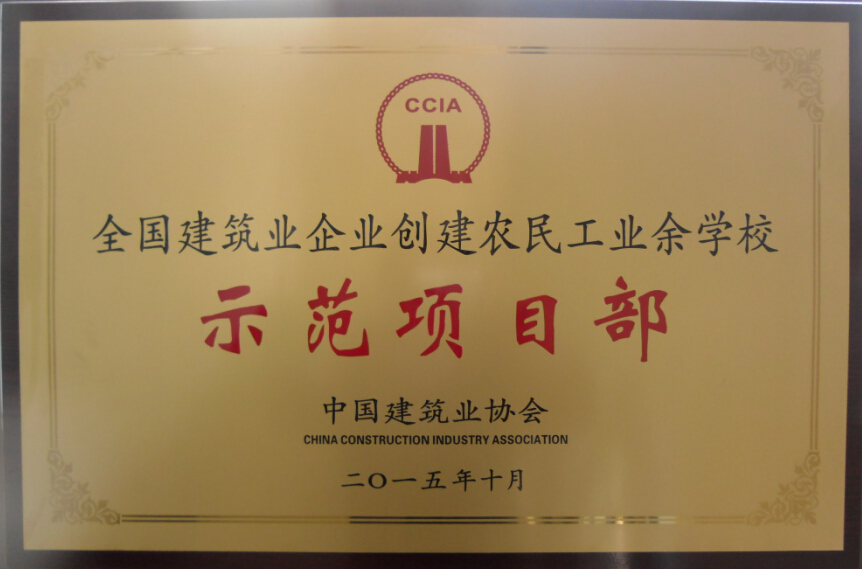 10月11日,中國(guó)建筑業(yè)協(xié)會(huì)在石家莊召開表彰大會(huì),股份公司圩村項(xiàng)目部榮獲了2014-2015年度全國(guó)建筑業(yè)企業(yè)創(chuàng)建農(nóng)民工業(yè)余學(xué)校示范項(xiàng)目部殊榮。 9月11日,股份公司圩村項(xiàng)目部順利通過(guò)了江蘇省、南京市建筑業(yè)協(xié)會(huì)的考核驗(yàn)收,是南京市建筑業(yè)2014–2015年度唯一一家獲得此項(xiàng)榮譽(yù)的單位。