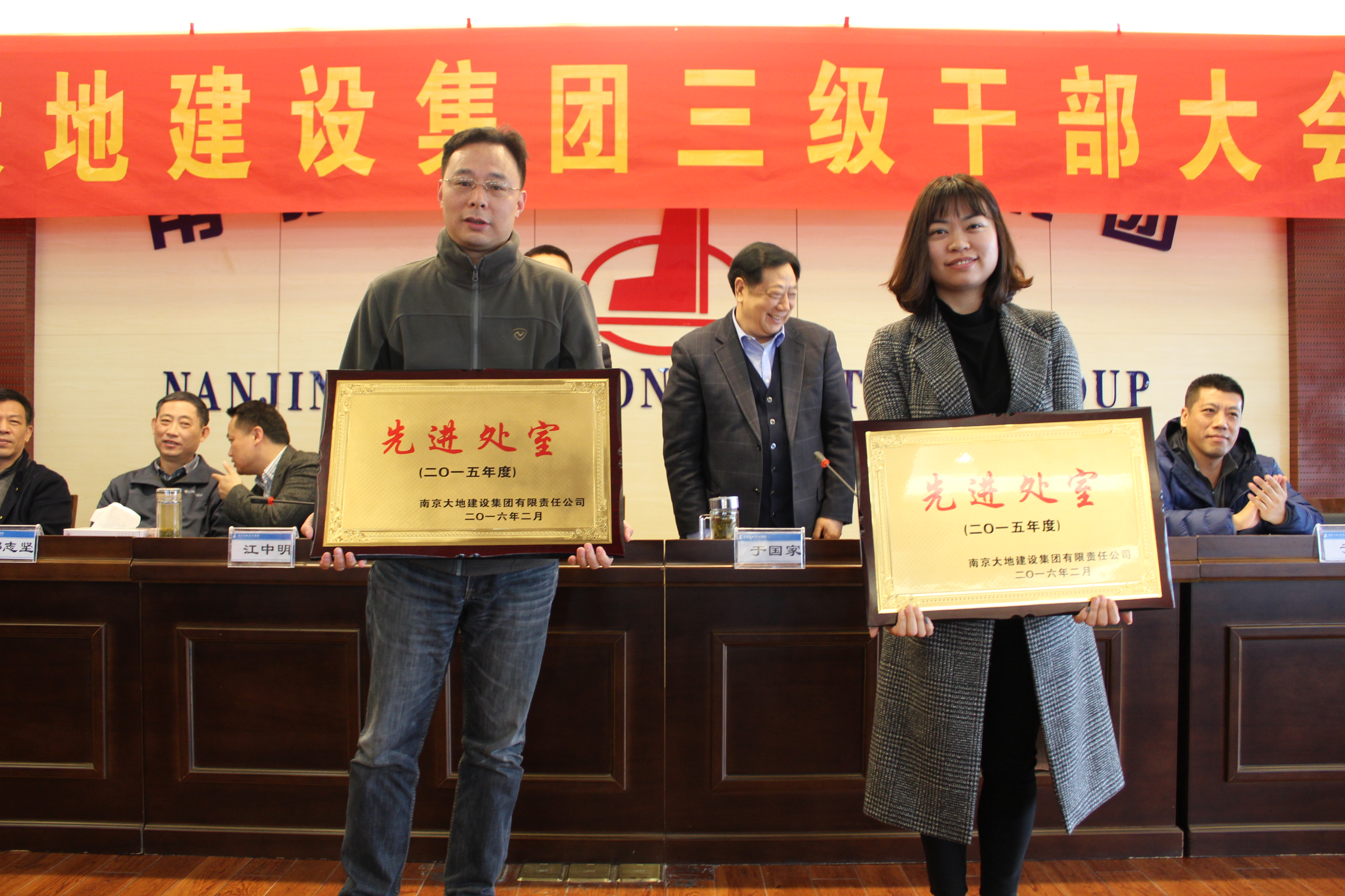 大會首先宣布人事任免事項。伍貽安董事長宣布普寧投資有限公司四屆一次董事會決議,根據(jù)董事會提名,江中明任南京大地建設集團有限責任公司總裁;于春董事長宣布國豐投資有限公司二屆一次董事會決議;江中明總裁宣布人事任命決定,根據(jù)總裁提名,報請集團公司董事會批準決定聘鄒志堅、劉亞非、顧衛(wèi)東、于春任南京大地建設集團有限責任公司副總裁、萬勝任大地建設集團有限責任公司總會計師、龐濤任大地建設集團有限責任公司總工程師。還宣布了子分公司及機關處室的人事任免決定。
