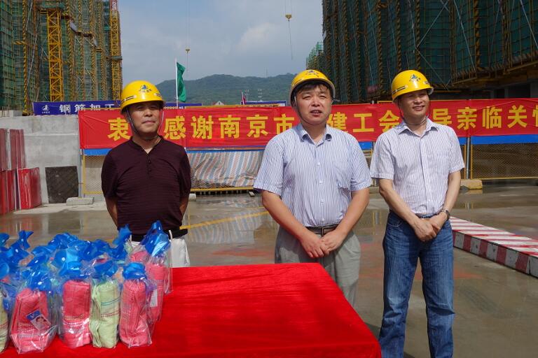 8月10日上午,南京市總工會(huì)主席聞慶武 、城建工會(huì)主席劉斌等領(lǐng)導(dǎo)來到我公司江寧世茂項(xiàng)目部工地送清涼,集團(tuán)公司黨委書記、工會(huì)主席陳慶生及股份公司相關(guān)領(lǐng)導(dǎo)陪同慰問。