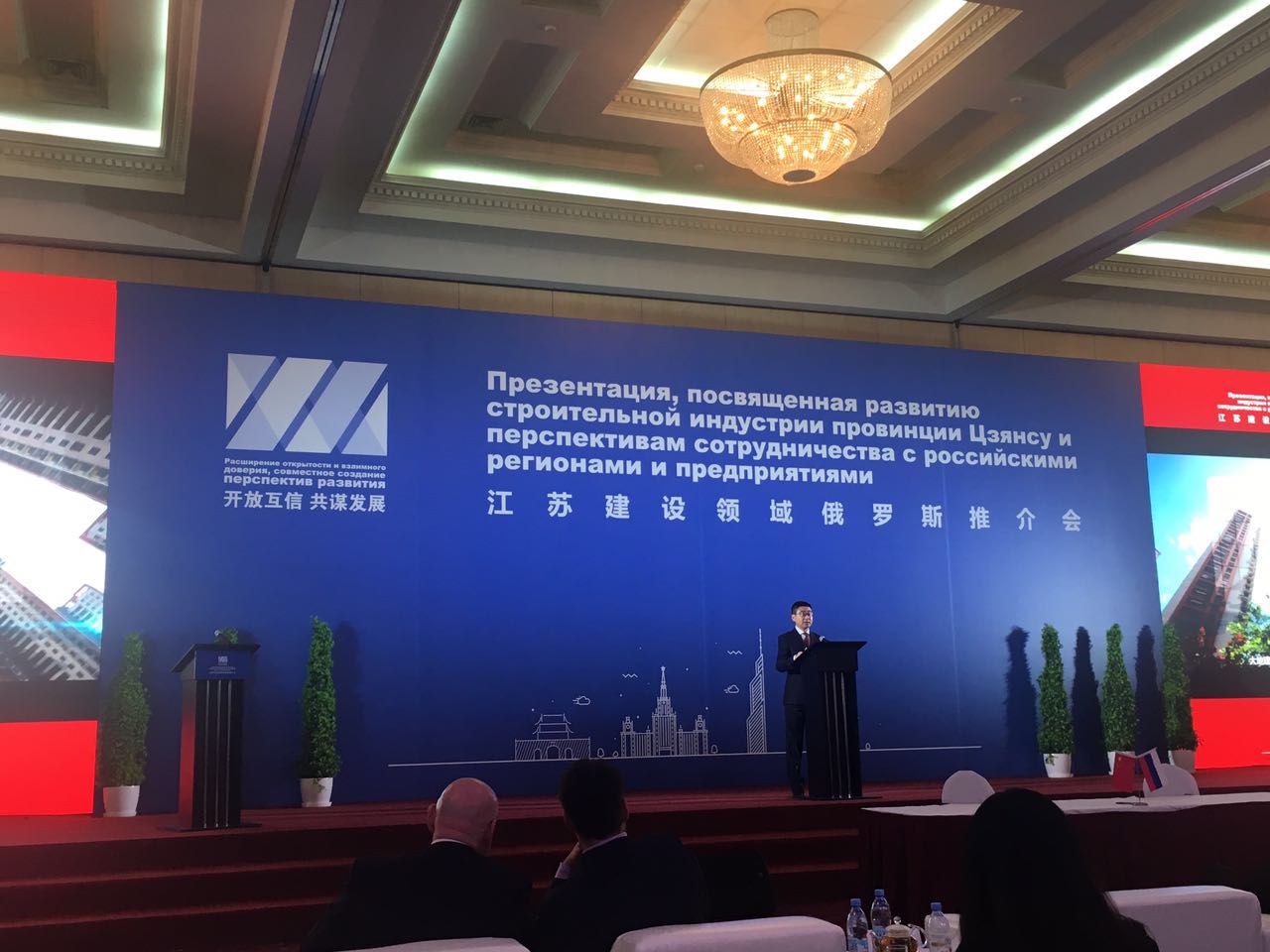 由江蘇省住房城鄉(xiāng)建設(shè)廳主辦、江蘇省商務(wù)廳和江蘇省人民政府外事辦協(xié)辦的首次江蘇省建設(shè)領(lǐng)域俄羅斯推介會(huì)9月8日在莫斯科成功舉行。來自江蘇省人民政府辦公廳、江蘇省住房城鄉(xiāng)建設(shè)廳、莫斯科州建設(shè)部、俄羅斯聯(lián)邦建筑企業(yè)聯(lián)合會(huì)、俄羅斯聯(lián)邦工商會(huì)、俄羅斯聯(lián)邦綠色建筑協(xié)會(huì)、以及江蘇省和莫斯科州建設(shè)領(lǐng)域優(yōu)勢企業(yè)約300人參會(huì)。