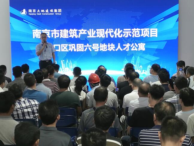 8月10日,為進(jìn)一步推動南京建筑業(yè)裝配式建筑發(fā)展,促進(jìn)建筑施工企業(yè)由傳統(tǒng)施工方式向裝配式施工轉(zhuǎn)型,“裝配式建筑•浦口行” 南京建筑業(yè)協(xié)會質(zhì)量安全三年提升行動系列主題活動之一,南京裝配式建筑技術(shù)觀摩交流會在大地建設(shè)承建的浦口區(qū)鞏固六號地塊人才公寓項(xiàng)目隆重召開。各會員單位或相關(guān)單位技術(shù)負(fù)責(zé)人、項(xiàng)目經(jīng)理、項(xiàng)目技術(shù)負(fù)責(zé)人200余人出席盛會,以專業(yè)的、廣泛的視角,觀摩交流研討目前南京市裝配式建筑發(fā)展的經(jīng)驗(yàn)與面臨的問題,融會各方的智慧探討裝配式建筑的未來方向,本次會議得到南京大地建設(shè)的精心組織與大力支持。