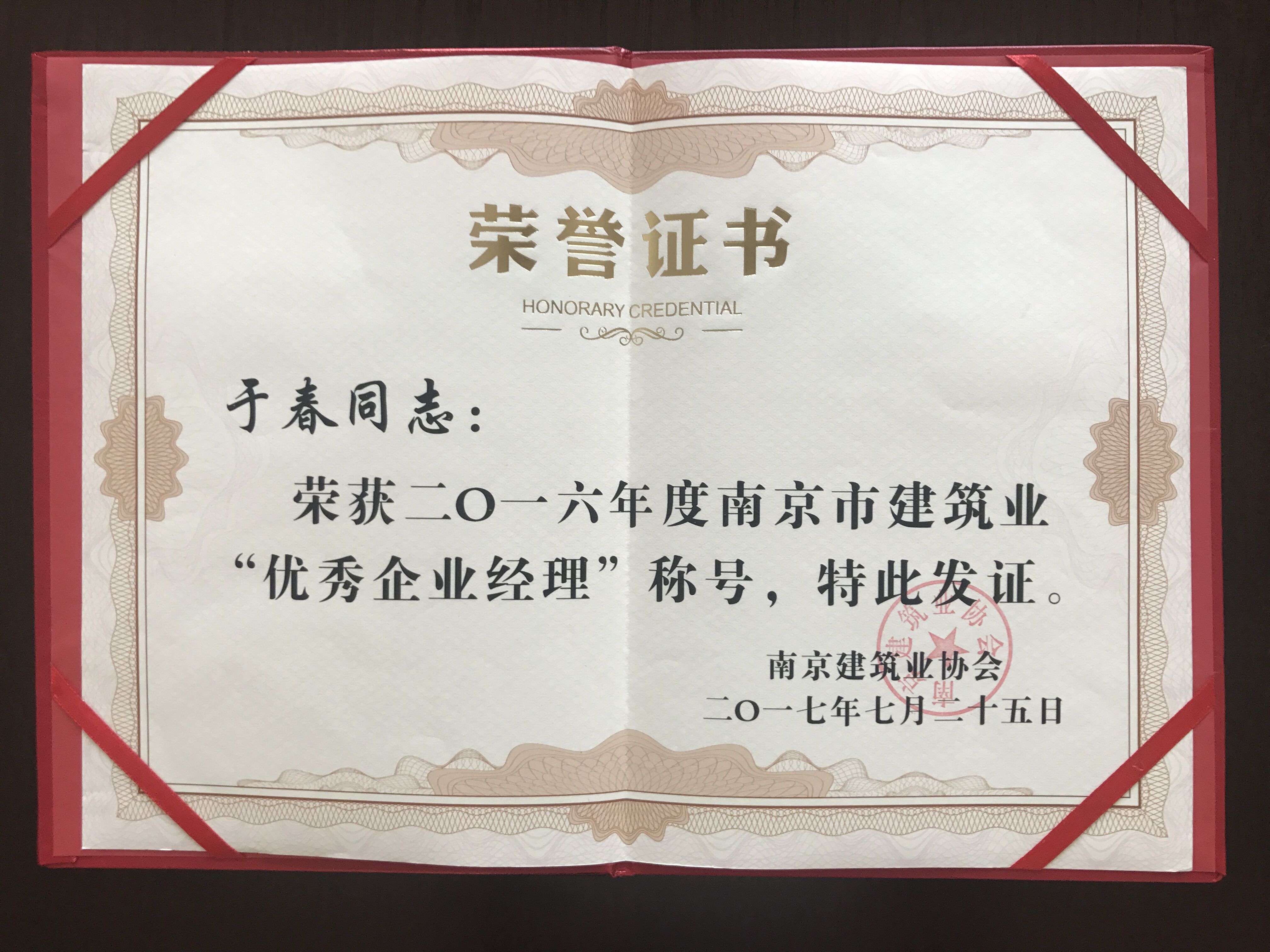 2017年8月25日,南京建筑業(yè)協(xié)會(huì)七屆五次理事會(huì)暨2017年度表彰大會(huì)在省會(huì)議中心召開,表彰主動(dòng)適應(yīng)新常態(tài),推動(dòng)行業(yè)新發(fā)展,為加強(qiáng)南京市建筑業(yè)企業(yè)品牌建設(shè)做出貢獻(xiàn)的企業(yè)和企業(yè)經(jīng)理。南京大地建設(shè)集團(tuán)有限責(zé)任公司和南京大地建設(shè)(集團(tuán))股份有限公司被雙雙授予2016年度南京市建筑業(yè)“優(yōu)秀企業(yè)”榮譽(yù)稱號(hào),集團(tuán)公司副董事長(zhǎng)于春榮獲南京市建筑業(yè)“優(yōu)秀企業(yè)經(jīng)理”榮譽(yù)稱號(hào)。南京大地建設(shè)(集團(tuán))股份有限公司榮獲7項(xiàng)“金陵杯”獎(jiǎng)。