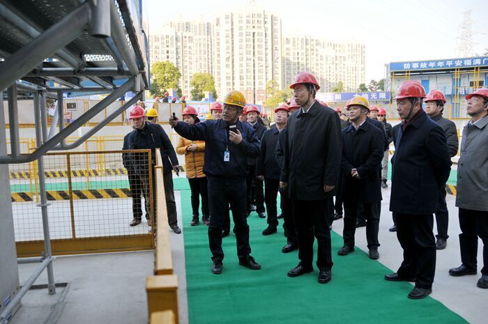 江蘇省政府于12月19日下午至20日上午在南京召開全省建筑業(yè)改革發(fā)展工作會議。會議期間江蘇省副省長藍紹敏帶領(lǐng)觀摩組到我公司承建的浦口區(qū)鞏固六號地塊人才公寓工地觀摩并指導(dǎo)工作。該項目是以大地建設(shè)集團成熟的裝配式建筑技術(shù)建設(shè)施工的,體現(xiàn)著南京市在推進建筑產(chǎn)業(yè)化發(fā)展方面的成效。公司總裁江中明、總工程師龐濤等陪同。