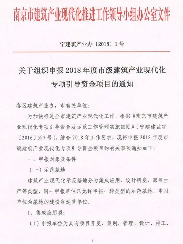 關(guān)于組織申報(bào)2018年度市級(jí)建筑產(chǎn)業(yè)現(xiàn)代化專項(xiàng)引導(dǎo)資金項(xiàng)目的通知