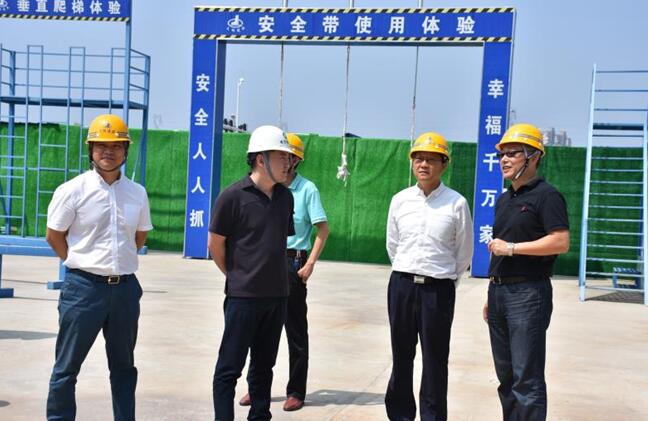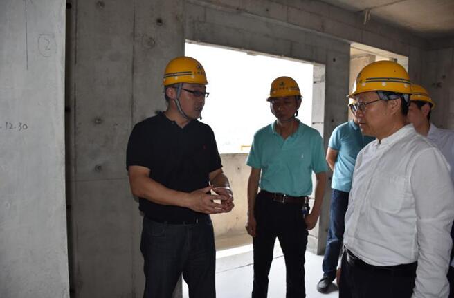 2018年6月8日,江蘇省住房和城鄉(xiāng)建設(shè)廳劉大威副廳長帶領(lǐng)省廳相關(guān)處室負責人,在集團公司江中明總裁和龐濤總工程師的陪同下,對我公司總承包承建的丁家莊A27項目進行調(diào)研。