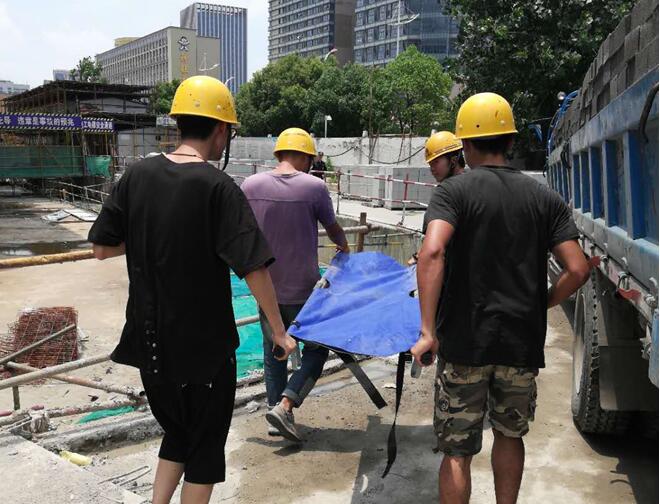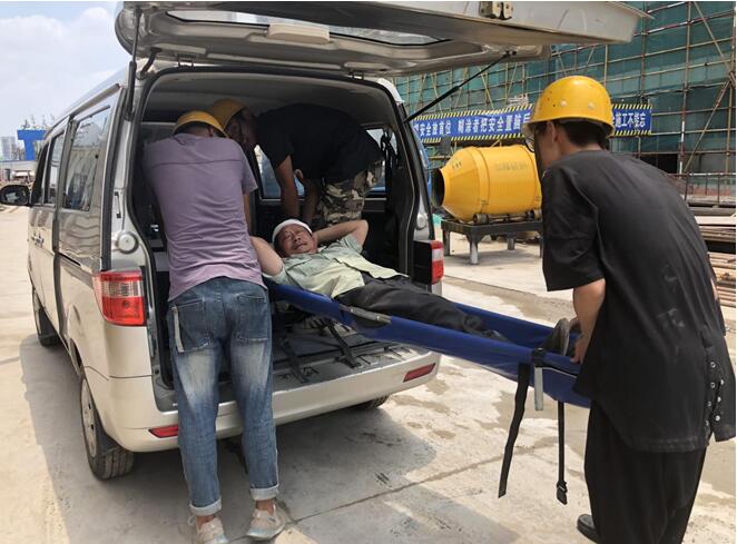 經(jīng)過止血、包扎處理后,緊急救援小組將傷者用擔(dān)架送至救援車輛送往醫(yī)院就醫(yī)