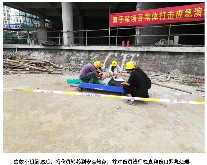 2018年安全生產(chǎn)月以來,雙子星項目部積極開展各項安全生產(chǎn)月活動。近日,雙子星項目部組織了物體打擊事故應(yīng)急救援預(yù)案演練。整個演練活動快速、有效,演練過程緊張有序。通過本次演練,不僅檢驗了項目部的應(yīng)急反應(yīng)及處理能力,也更進(jìn)一步增強(qiáng)了高效有序處理意外事故的能力。