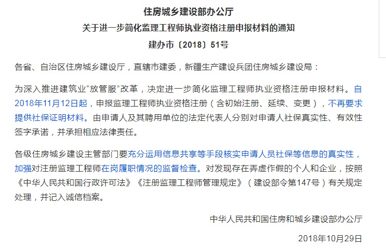 監(jiān)理工程師執(zhí)業(yè)資格注冊,不再要求提供社保證明材料!