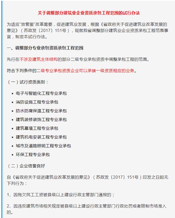淡化企業(yè)資質(zhì)!江蘇擬率先實(shí)施建企可以超資質(zhì)等級(jí)、跨資質(zhì)專業(yè)承接業(yè)務(wù)