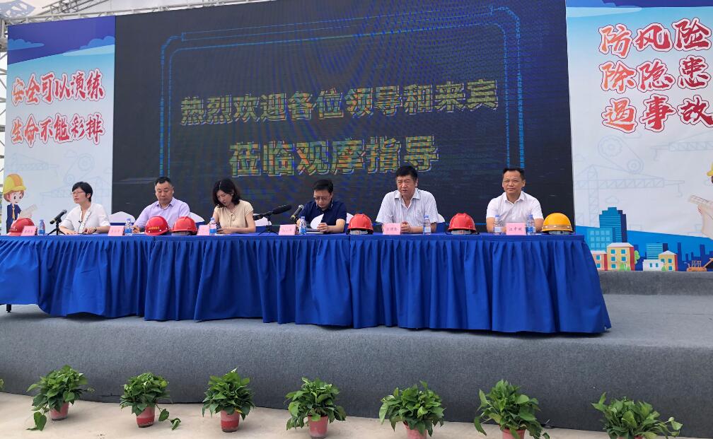 6月25日上午9:30分,建鄴區(qū)建筑工程突發(fā)事故綜合應(yīng)急演練在我公司總承包的一中分校項目實施。這次活動由南京市建鄴區(qū)建設(shè)局、南京建鄴國有資產(chǎn)經(jīng)營集團(tuán)有限公司主辦,由南京市建鄴區(qū)建筑安全生產(chǎn)監(jiān)督站承辦,我們南京大地建設(shè)集團(tuán)有限責(zé)任公司和南京市建鄴區(qū)消防救援大隊、南京明基醫(yī)院協(xié)辦。參加的領(lǐng)導(dǎo)有建鄴區(qū)人民政府副區(qū)長孫小軍;南京市城鄉(xiāng)建設(shè)委員會質(zhì)安處副處長李琍;建鄴區(qū)建設(shè)局局長顧穎勤等。集團(tuán)公司總裁江中明及現(xiàn)代建筑業(yè)平臺黨委書記顧衛(wèi)東,以及集團(tuán)安環(huán)處和集團(tuán)子分公司安全負(fù)責(zé)人、項目部安全主管到會參加。參加的人員和單位還有建鄴區(qū)各街道、消防大隊、生態(tài)科技島經(jīng)開區(qū)、高新區(qū)、江東、河西CBD等各安全分管領(lǐng)導(dǎo);建鄴區(qū)區(qū)管項目建設(shè)工程建設(shè)單位、監(jiān)理單位、施工單位負(fù)責(zé)人等200余人。