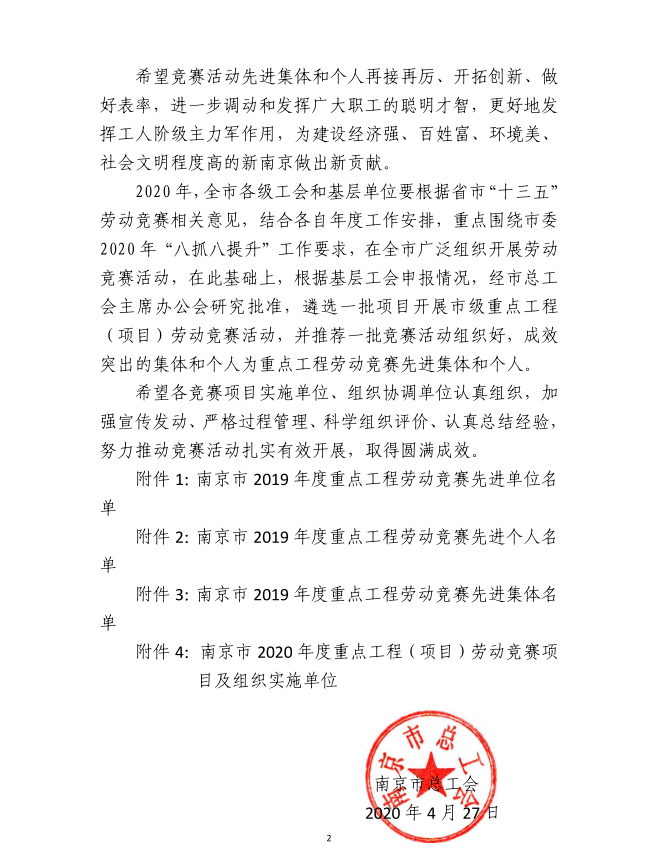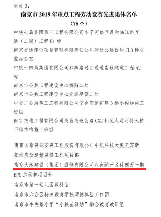 日前,公司六合經(jīng)濟(jì)開發(fā)區(qū)科創(chuàng)園一期EPC總承包工程項目部被南京市總工會授予“2019年度南京市重點工程勞動競賽先進(jìn)集體”,同時被授予“南京市工人先鋒號”榮譽稱號。