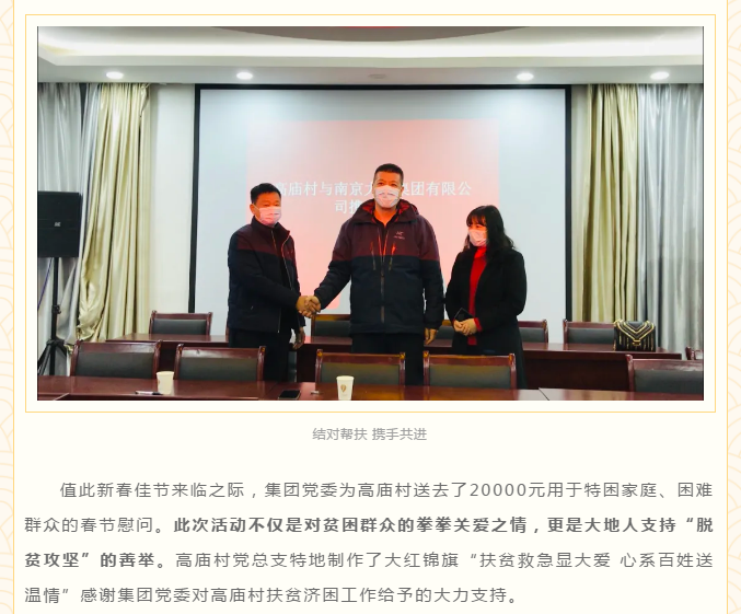 城鄉(xiāng)共建手牽手 結(jié)對幫扶惠民生 | 大地建設(shè)集團(tuán)黨委與浦口星甸高廟村結(jié)對共建 開展春節(jié)幫扶慰問活動