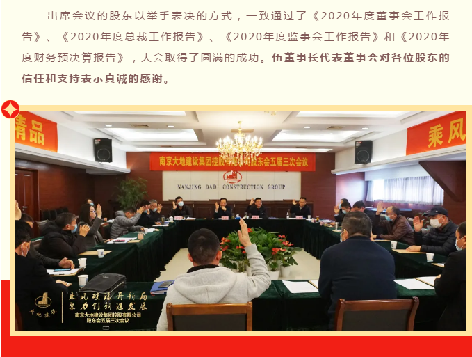 南京大地建設集團控股有限公司股東會五屆三次會議順利召開