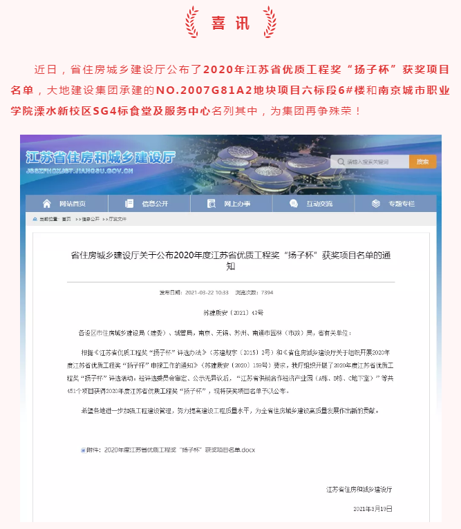 喜訊 | 集團(tuán)榮獲兩項(xiàng)省優(yōu)質(zhì)工程“揚(yáng)子杯”獎(jiǎng)!