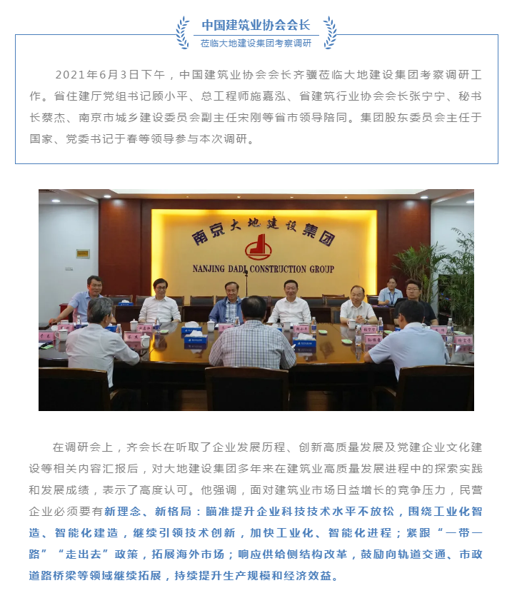 中國建筑業(yè)協(xié)會會長齊驥蒞臨大地建設集團考察調研