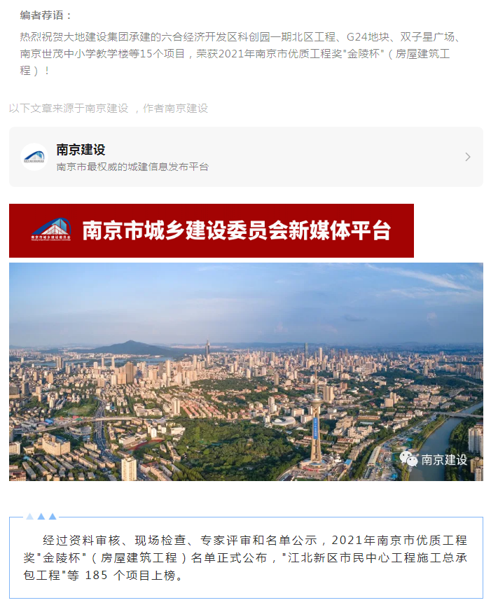 2021年南京市優(yōu)質(zhì)工程獎(jiǎng)"金陵杯"(房建)名單出爐
